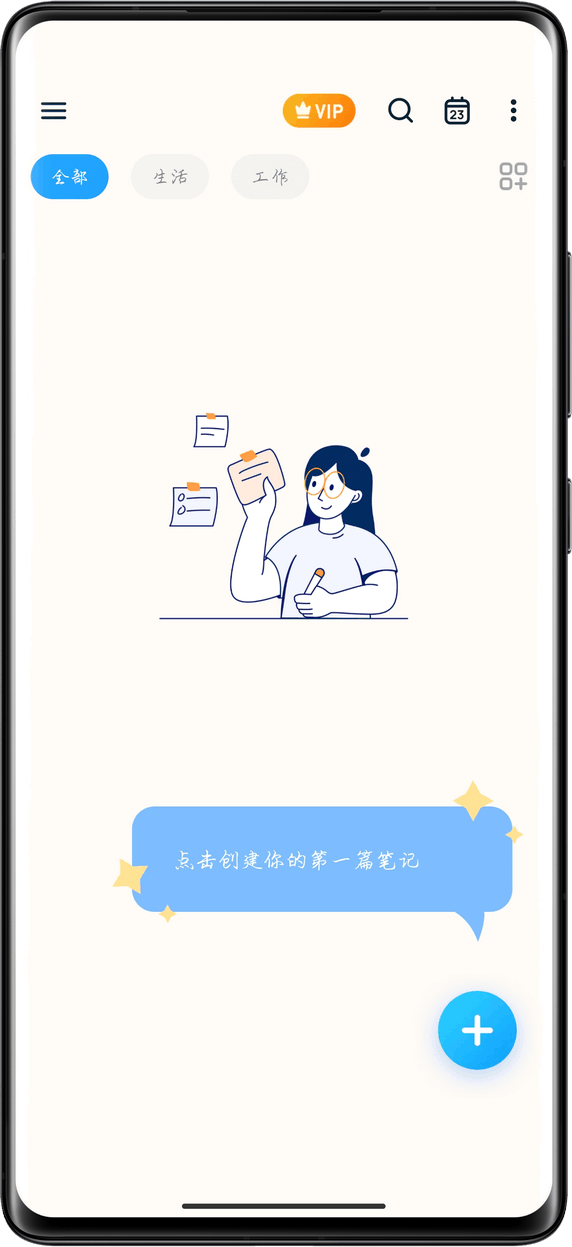 下载安装软件后打开即可使用,进入首页点击新增笔记即可开始记录内容。用户可以选择不同颜色或便签样式进行区分,也可以通过时间视图查看历史记录。