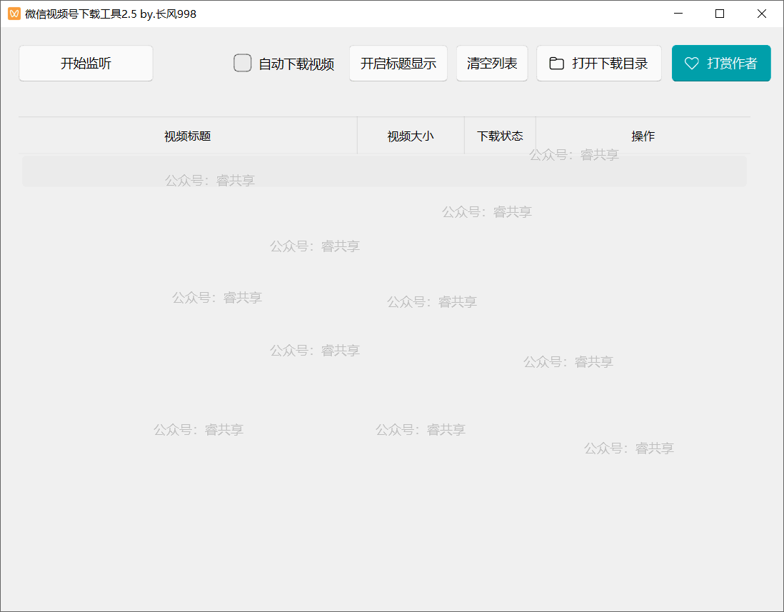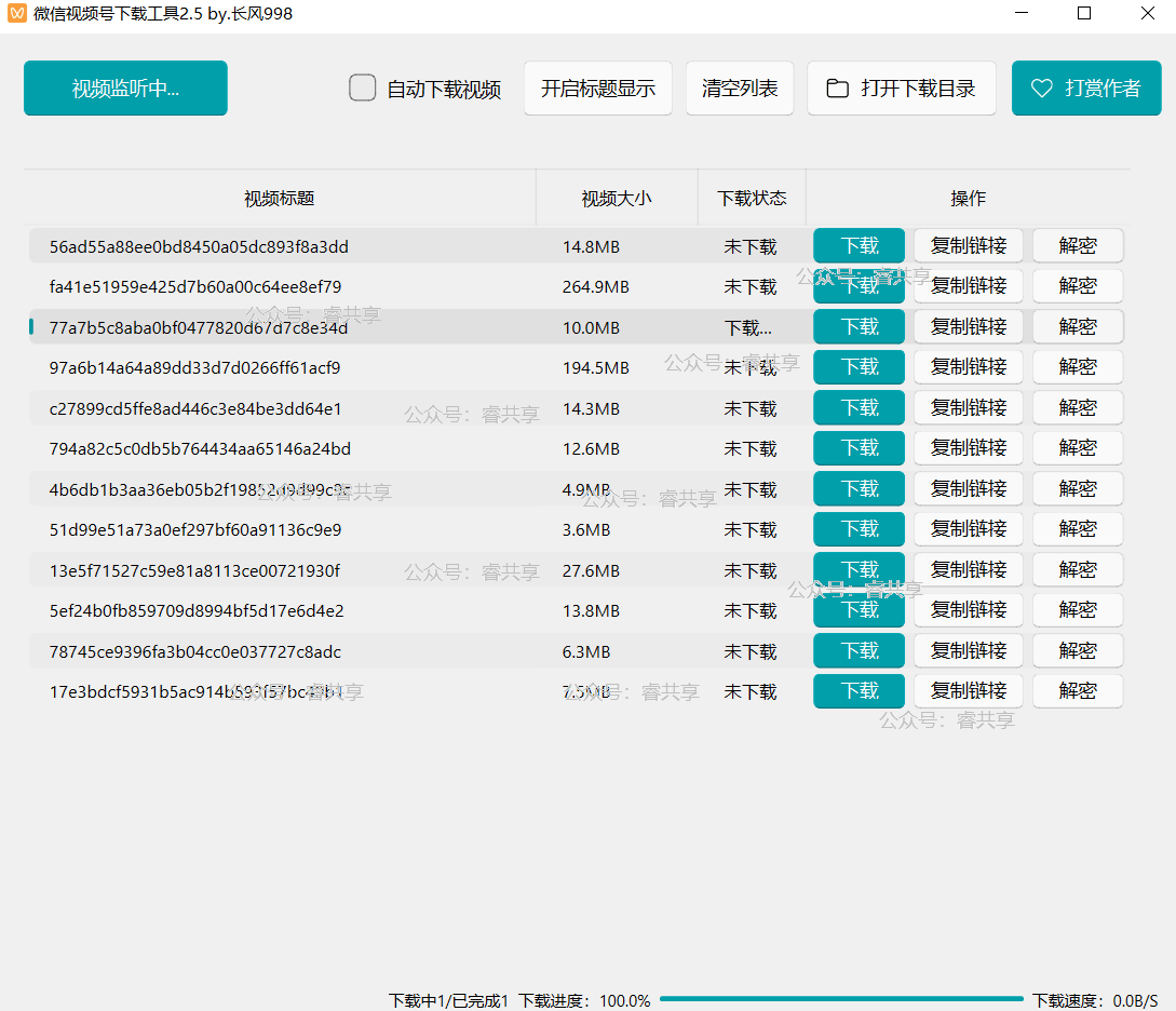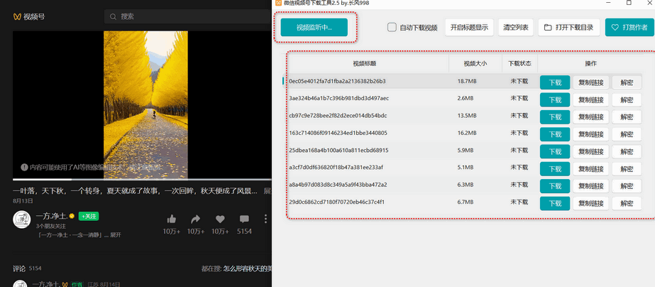 2、点击 开始监听 按钮,然后进入微信视频号,软件会自动监听视频内容
