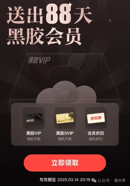 我手里还有 88 天网易云黑胶会员卡,马上要到期了。与其闲置,不如分享给需要的朋友,喜欢的记得抓紧领取!