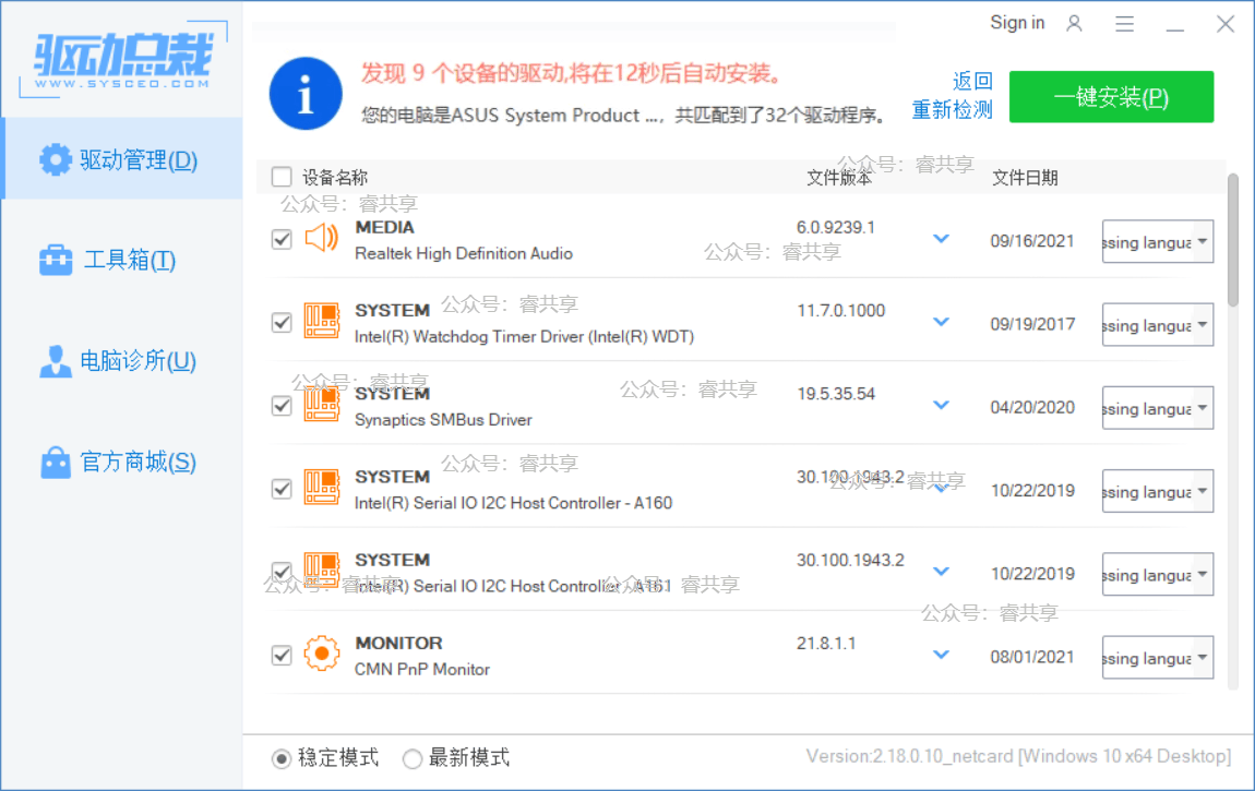 软件会自动扫描电脑硬件型号,帮你匹配最合适的驱动。支持一键安装,也可以自己挑选安装,省心又灵活。