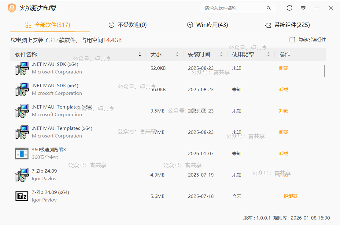 - 纯粹免费无干扰:这款软件坚决抵制收费功能阉割现象,彻底告别弹窗广告与软广的烦扰。其所有核心功能,包括精准卸载、深度残留清理以及全面的安装监控,均毫无保留地免费向用户开放,让用户能够全身心沉浸于纯粹的工具体验之中。