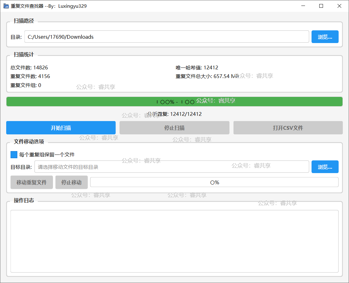 扫描完成后,会在当前目录生成一个 CSV 文件,清楚列出所有重复文件的完整路径,方便用户查看和处理。
