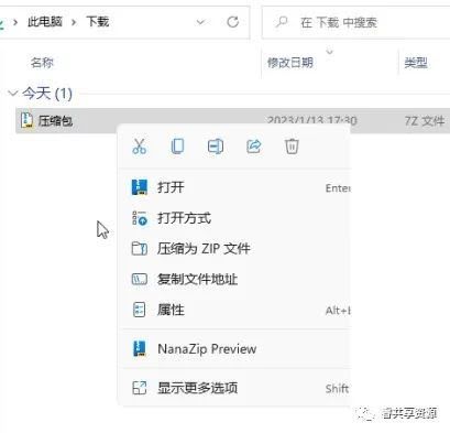 注:安装工具后如果你的右键菜单没有出现 NanaZip Preview